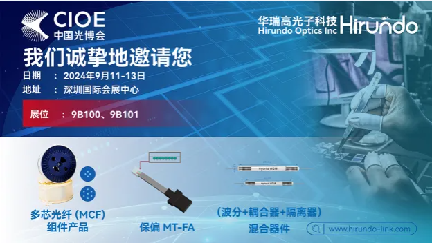 Hirundp will exhibit various types of optical fiber FBT couplers (PM , multi-core, single-mode, multi-mode) , hybrid devices, lasers, multi-core fiber solutions, etc. at booths 9B100 and 9B101 in .