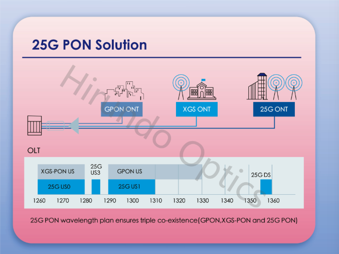 The higher the bit rate, the higher the dispersion. The upstream and downstream wavelengths of 25G PON are all in the O-band, which can avoid large losses or the need for dispersion compensation.