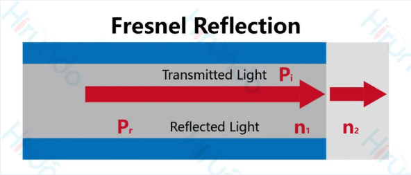 Reflection is caused by light passing from one medium into another medium with a different refractive index. The Fresnel phenomenon describes this reflection, so it is often called Fresnel reflection. For optical devices, reflections are caused by tiny particles at the optical coupling interface, caused by dirty contamination. and reflections from fiber optic cracks.