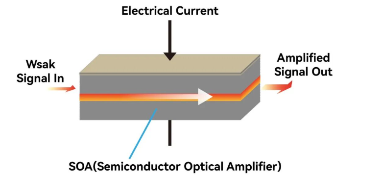 SOA uses a multi-quantum well structure to realize the excitation, transmission, and recombination of carriers and amplify optical signals.