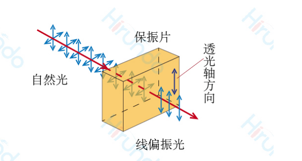 As shown in the figure, the light that passes through the polarizer becomes linearly polarized light with the light vibration direction parallel to the direction of the transmission axis.